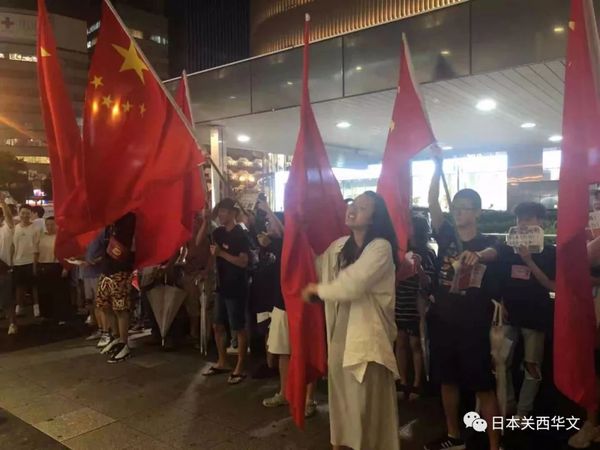 8月23日晚7点,三百多名中国留学生和当地华侨华人聚集在大阪难波高岛屋门口广场,高唱“歌唱祖国”等爱国歌曲,与同时举行的港独集会对峙!