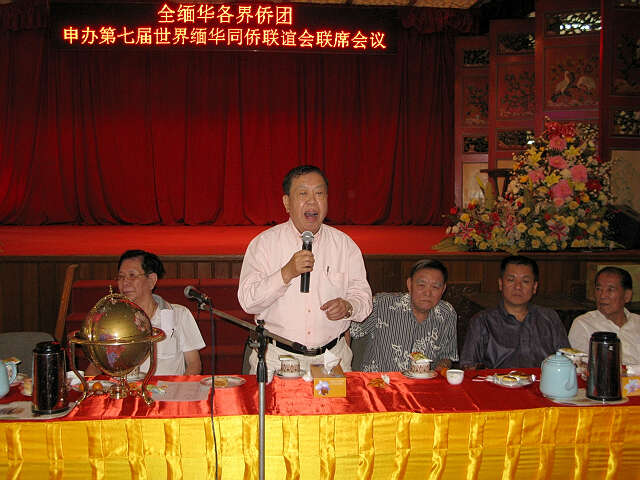 2012.3.6全缅华各侨团申办第七届世界缅华同侨联谊会联席会议上黄先生发言支持同侨大会在缅甸仰光召开(缅华网提供)