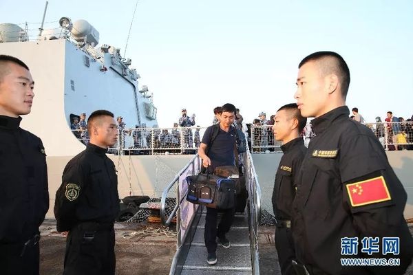 曾在也门为一家国有企业工作的张左和(音)回忆说:“当那艘军舰靠近时,喇叭里说着‘中国同胞,我们是来接你们回家的’,大家都欢呼‘中国万岁’。”