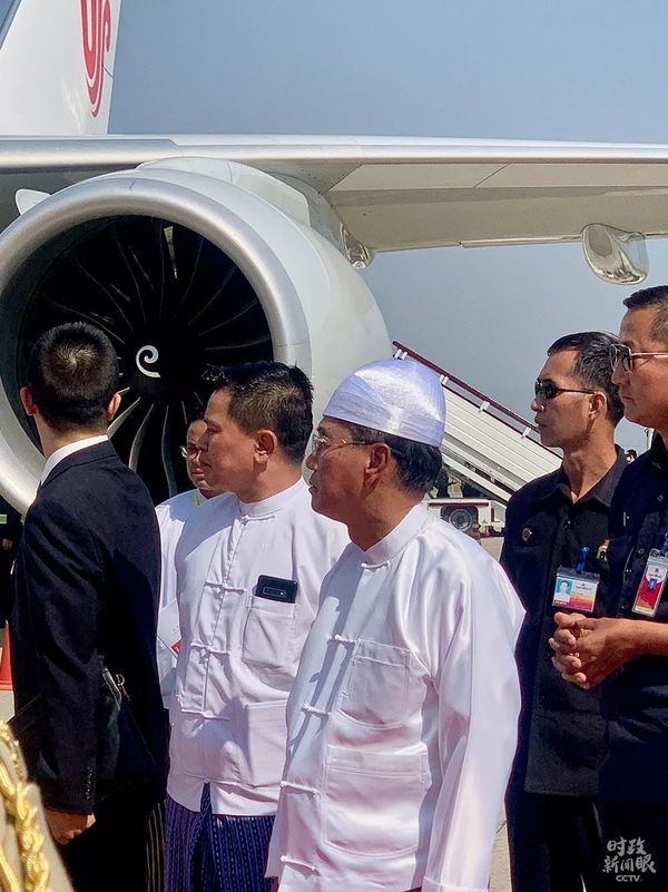 当地时间1月17日下午,习主席乘专机抵达内比都国际机场。