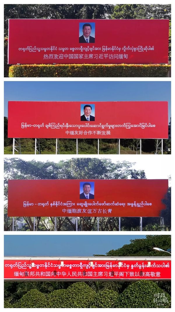 △“胞波”在缅语中,意为一母同胞的兄弟。《时政新闻眼》数了一下,内比都共在9个地方设立了大型欢迎标语,内容集中在这四句情真意切的语言里。(总台央视记者马超、黄京辉、石丞、范一鸣拍摄)