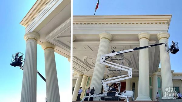 △为迎接习主席到来,工作人员几天前就做起了准备工作。(总台央视记者沈忱拍摄)