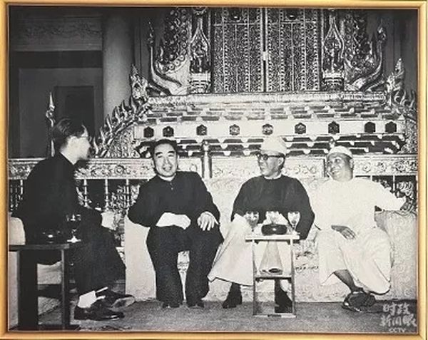 △1954年6月28日至29日,周恩来总理访问缅甸,同缅甸联邦总统巴宇(右二)、总理吴努(右一)亲切交谈。中缅发表联合声明,将和平共处五项原则列为处理两国关系准则。(总台央视记者荆伟拍摄)
