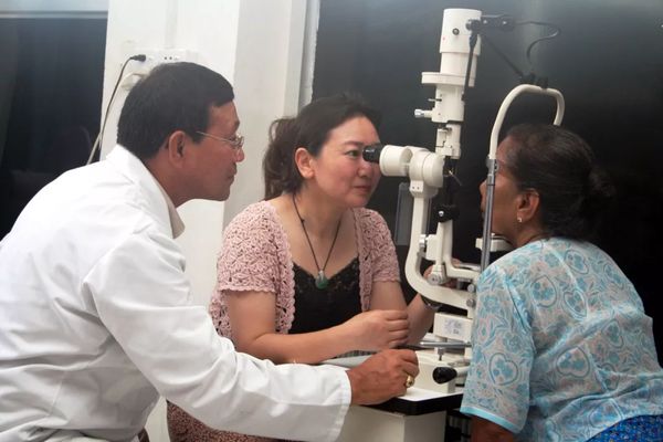 ▲2011年5月31日至6月7日,中国赴缅国际复明医疗队在缅甸仰光开展“光明行”活动,为248名缅甸白内障患者免费进行手术。图为中缅两国医生为已接受手术的缅甸白内障患者复查。