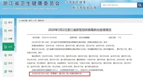 据浙江丽水市通报,2020年3月1日0-24时,新增境外(意大利)输入性确诊病例1例。具体情况如下: