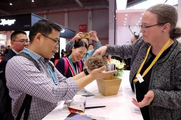 ▲资料图片:澳大利亚贸易、旅游和投资部长西蒙·伯明翰率领200家澳大利亚公司组成的代表团出席了第二届中国国际进口博览会。图为2019年11月6日,在一家澳大利亚床上用品展台,参观者体验野生灰雁绒的手感。(新华社)