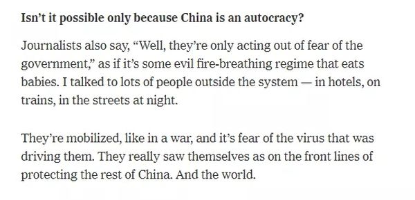 《纽约时报》问世卫专家:中国能这么做,难道不是因为专制?