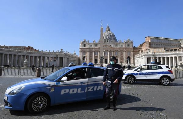 3月15日,在意大利罗马的圣彼得广场,一名戴口罩的警察在执勤。新华社/路透