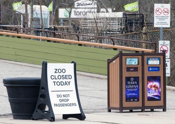 3月14日,加拿大多伦多动物园摆放了闭园的提示牌。新华社发(邹峥 摄)
