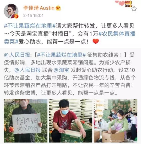 淘宝直播也出了大力,请来多位明星、名主播为农户卖菜。同时,也放低门槛,让农户自己直播卖菜。
