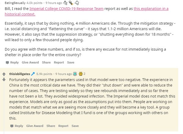 值得一提的是,当网友就英国高校给出的疫情报告提问时,盖茨在回答中肯定了中国在对抗新冠肺炎疫情期间所做出的努力。