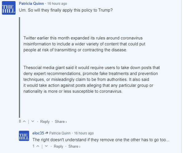 包括报道此事的美国《国会山报》以及美国《每日野兽》这种大体上持反特朗普立场的网站,也都对推特拒绝删帖封号的做法颇有微词。