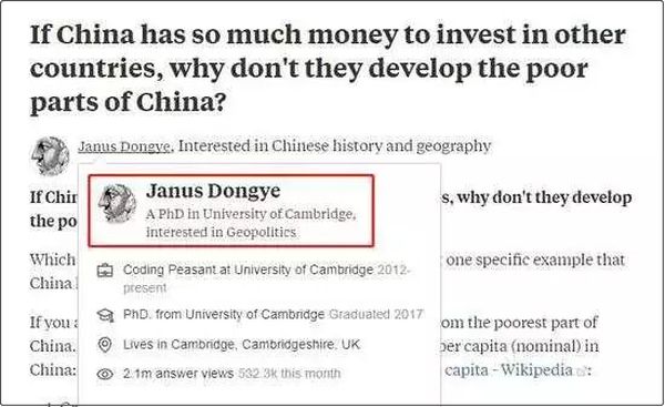 回答这个问题的是剑桥大学的一位博士,名叫Janus Dongye。