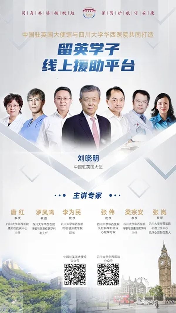 中国驻英国大使馆与四川大学华西医院共同打造“留英学子线上援助平台”。图片来源:中国驻英国大使馆网站