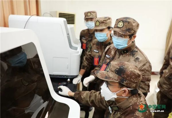 陈薇院士查看核酸检测数据 图片来源:中国军网