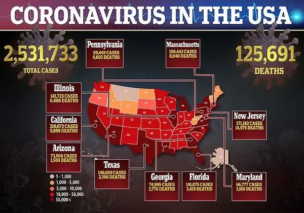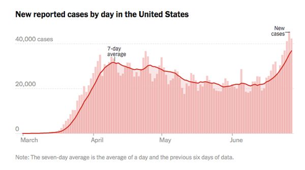 而美国在各个州放开之后,感染人数也重新开始大幅度增长,其中单日新增人数达到4.3万,总人数超过了253万。