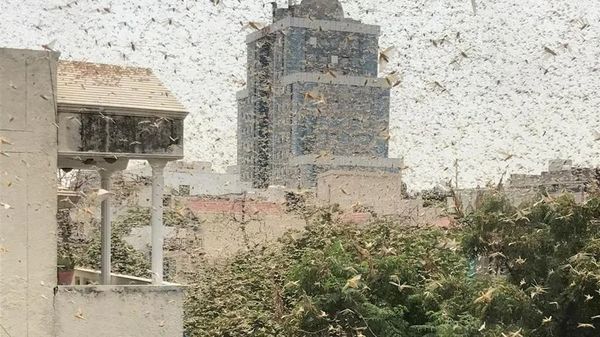 ▎蝗虫聚集在印度首都德里附近的古尔冈市