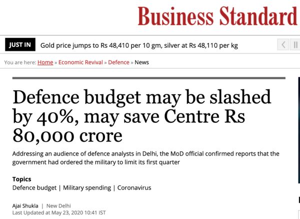 印度媒体《Business Standard》5月份的一篇文章,来自印度国防部高级官员消息,在2020-2021财年,国防部的支出将削减40%。印度军费支出排名世界第三,2019年的军费高达694亿美元,而且印度军队内部的腐败问题始终未能得到解决。