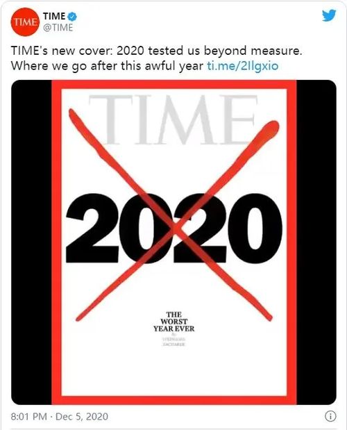 去年12月5日的《时代周刊》封面称2020年是最糟糕的一年(《时代周刊》推特截图)