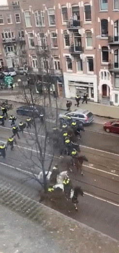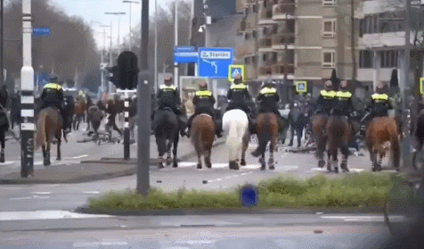 荷兰Tiktok上传播的,荷兰首都骑警横队冲锋的画面 图源:社交媒体