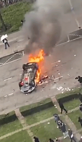 在荷兰艾恩德霍芬,当地抗议者纵火,向警察投掷石块和烟花 图源:社交媒体