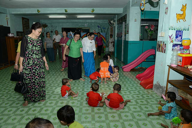 2014年7月8日,早晨9时,妇协主席李为华及28名会员,一起来到瑞贡岱孤儿院。据院长杜琴玛埃介绍,院内一共收留有58名孤儿。