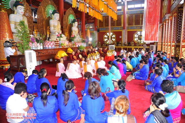 7月5日,曼德勒金多堰妇女慈善会于金多堰大雄宝殿内,举行瓦梭月盈袈裟布施会。请十余名高僧诵经。场面壮观,令人欢呼“善哉”。