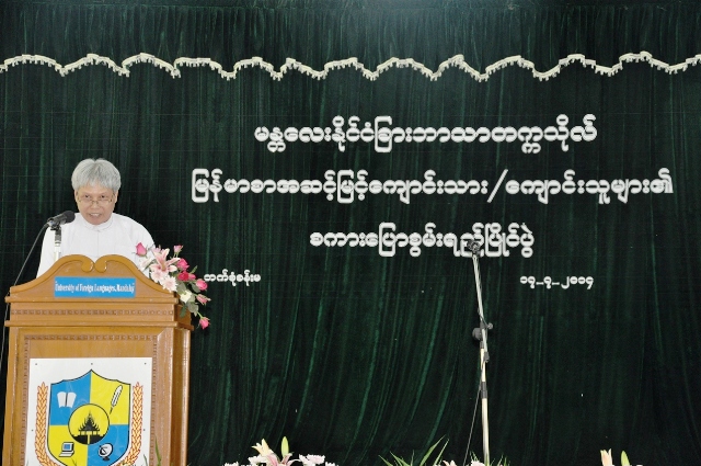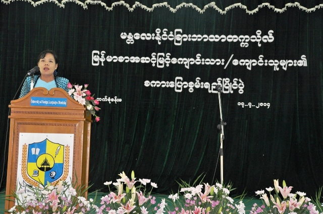 今日(7月17日)上午(9:30)时,于曼德勒外国语大学礼堂内举办缅文系高级班学生的演讲比赛。参赛者都是来自中国云南民族大学、广西民族大学,在曼德勒外国语大学,就读缅文的留学生。