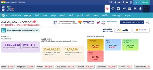 据印度卫生部4月24日公布的最新数据,印度新冠肺炎确诊病例升至16610481例。在过去24小时内,印度新增确诊病例346786例,新增死亡病例2624例,累计死亡189544例。据印媒报道,印度报告的单日新增死亡人数也创下了该国新增死亡数的新纪录。