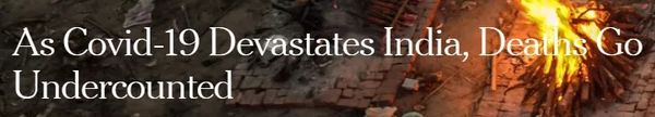 4月24日,美国《纽约时报》发布由四名记者联合撰写的长文,描述印度火葬场、医院和患者家庭情况,直指印度有新冠死亡病例遭忽视或少报,导致印度疫情造成的死亡人数被低估。