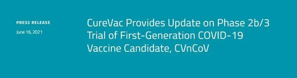 CureVac公司16日披露中期数据