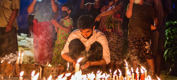 缅甸仰光的居民不顾军方的宵禁令,为在示威活动中丧生的人员举行守夜活动。