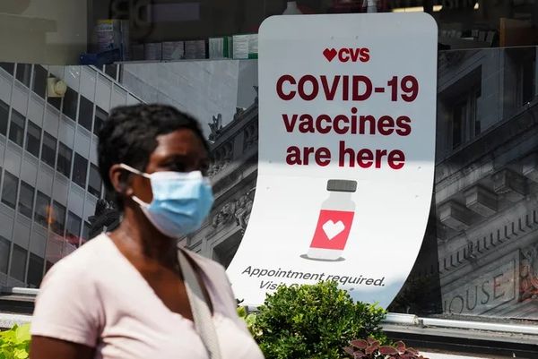 8月11日,一名行人经过美国纽约一处提供新冠疫苗接种的药店。新华社记者 王迎 摄