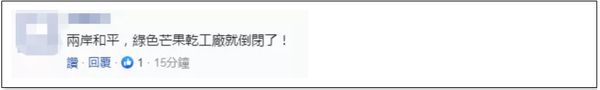 针对李丽珍的论调,有岛内网友直言,“两岸和平,绿色芒果干(‘亡果感’的谐音)工厂就倒闭了!”