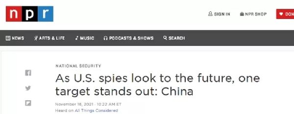美国全国公共广播电台(NPR)16日报道称,美国现任和前任情报官员最近开了一次线上会议,谈到所谓“中国针对美国的大型间谍活动所带来的挑战”。