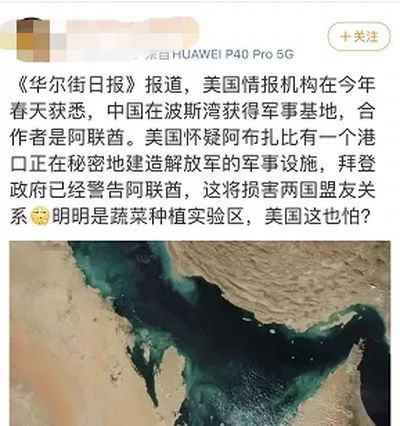 日前,《华尔街日报》引述知情人士的话称,美国情报机构今年春天得知,中国正在阿联酋首都阿布扎比附近80公里的哈里发港秘密建造疑似军事设施。美方对此高度警觉,并发起了为期几个月的密集外交努力。