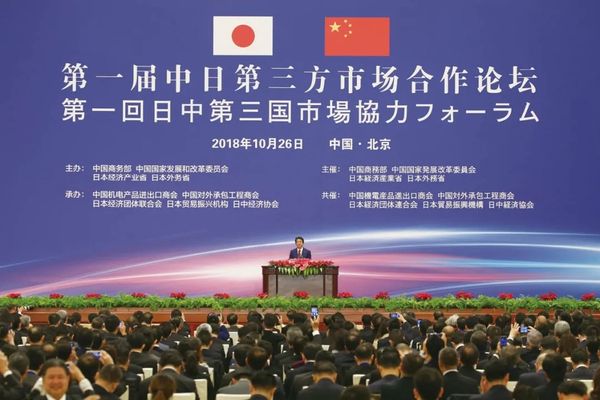 ▎2018年10月26日,由商务部、国家发改委与日本经济产业省、外务省共同主办的首届中日第三方市场合作论坛在北京人民大会堂举行
