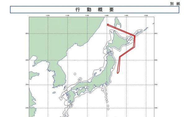 日本防卫省统合幕僚监部发布的俄军机14日飞行路线图