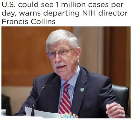 目前,美国单日新增新冠肺炎确诊病例超20万的数据已触目惊心,而美国权威专家的预测远不止于此!刚卸任的美国国家卫生研究院(NIH)院长柯林斯警告,进入冬季,如果不加强疫情防控,未来美国的单日新增确诊病例将可能突破每天100万!
