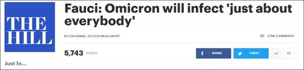 “奥密克戎将以其异乎寻常、前所未有的传播效率,最终感染几乎每一个人(find just about everybody)。”福奇称,“那些接种过疫苗乃至加强针的人也会被感染。”