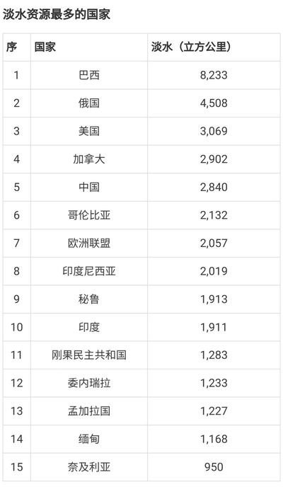 世界各国年水资源总量排名前15名,缅甸在东南半岛是一骑绝尘的。
