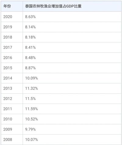 农业在经济中的占比早就很微小了,比如在泰国公占GDP的8%左右。