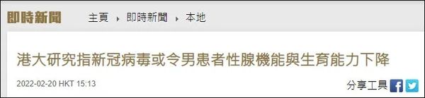 发表在《临床医学》的研究文章标题:鼻腔内感染的新型冠状病毒2型(SARS-CoV-2)引起的睾丸损伤可通过接种疫苗预防 图源:香港大学官网
