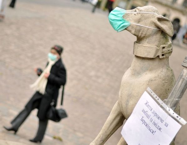 ▲资料图片:2009年11月3日,戴口罩的行人从乌克兰利沃夫市中心的一个广场走过。新华社/法新