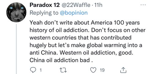 有人直指彭博社“双标”,讽刺称:“是呀,就不提美国对石油上瘾的百年历史呗,也不要看其他西方国家巨大的石油消费呗,让我们把全球变暖问题变成‘反中国’行动。西方对石油上瘾,好事;中国对石油上瘾,糟糕。”