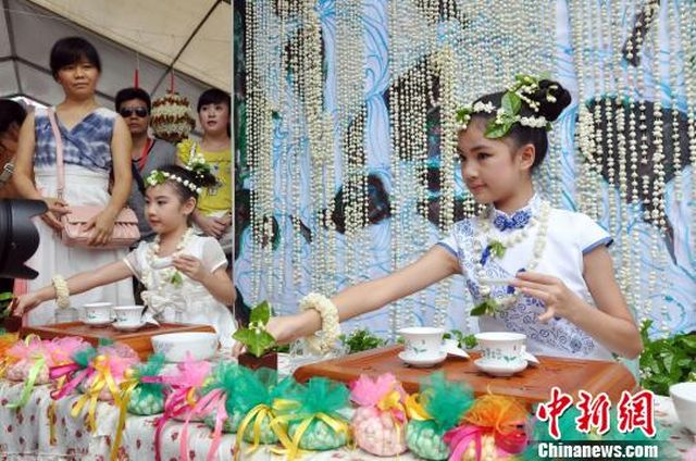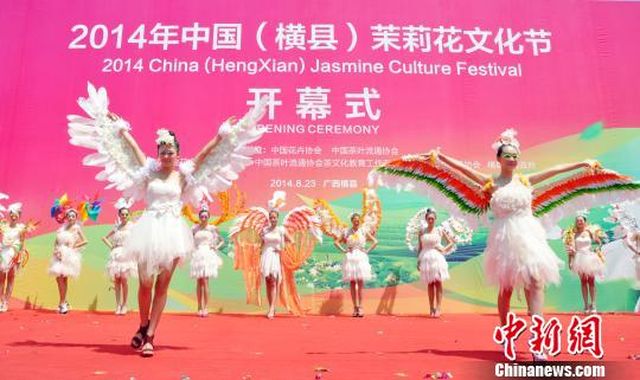 中新网南宁8月23日电(记者 黄艳梅)2014年中国(横县)茉莉花文化节23日开幕。来自境内外的茶商、文化艺人、游客云集“中国茉莉之乡”广西南宁市横县,探寻商机,体验当地茉莉文化底蕴。