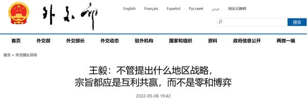 王毅:不管提出什么地区战略,宗旨都应是互利共赢,而不是零和博弈2022年5月6日,国务委员兼外长王毅同印尼对华合作牵头人、统筹部长卢胡特举行视频会晤。……