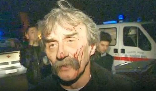 不过当时还有一个情况,政要旁边有一个争议人物:一位打遍前南各地的志愿民兵领袖——杰利科·拉兹尼亚托维奇·阿尔坎。我当时不希望他出镜,曾经一次在政要葬礼上,他就与国家高层同台被西方抓到镜头了。作为西方眼中的争议人物和犯罪分子,炸馆时他起初站在了塞总理马利扬诺维奇旁边,于是我让警方的乔维奇上校把阿尔坎挪开一点,这样我们就能有“干净”的镜头。因为我知道如果他出现在镜头里,西方媒体会故意转移话题,然后掩盖轰炸大使馆的这一罪行。