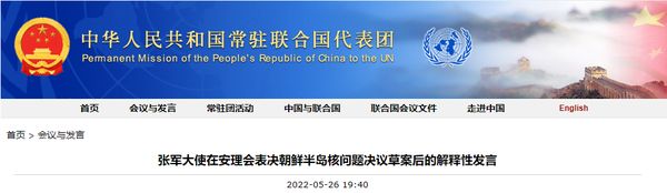 中国常驻联合国代表张军大使在安理会表决朝鲜半岛核问题决议草案后的解释性中发言表示,中国代表团刚才对美国提出的旨在对朝鲜追加制裁的安理会决议草案投了反对票。这是中方基于在半岛核问题上的一贯立场,全面分析当前半岛局势紧张升级的来龙去脉,充分考虑决议草案一旦通过可能引发的消极后果,包括对朝鲜应对国内新冠疫情产生的负面影响之后,反复权衡作出的慎重决定。事实也证明,一味依赖制裁无助于解决半岛问题。安理会制裁是手段,不是目的。