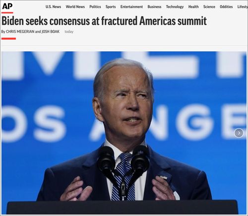 “分裂”、“分歧”、“外交冷遇”、“蒙上阴影”……这是外媒对于这场峰会所给予的形容词。美联社称,“拜登是在分裂的美洲峰会上寻求共识”;路透社则认为,拜登召开的,是一场因参会名单问题而饱受争议和受到冷落的地区峰会。